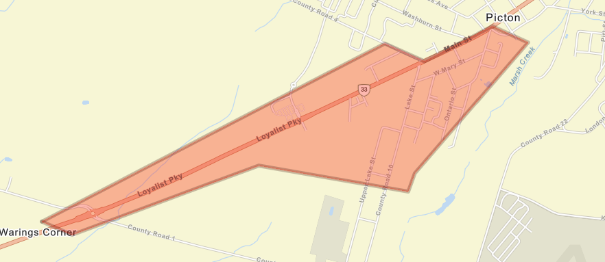 - Please view the Picton Municipal Drinking Water System area map provided below for referencing purposes.